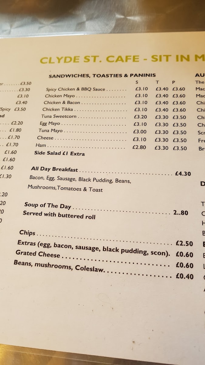 The menu focuses on classic cafe staples like a range of hot drinks including espresso-based coffees, tea, and Bovril, alongside toasted sandwiches and paninis filled with popular choices such as chicken tikka, bacon, and egg mayo. The breakfast rolls, featuring ingredients sourced fresh each morning, have a particular draw for regulars looking for a satisfying and affordable bite. Portion sizes are generous, making it a practical spot for those with hearty appetites.